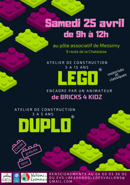 Des LEGO DUPLO seront mis à disposition pour les plus petits, de 3 à 5 ans.