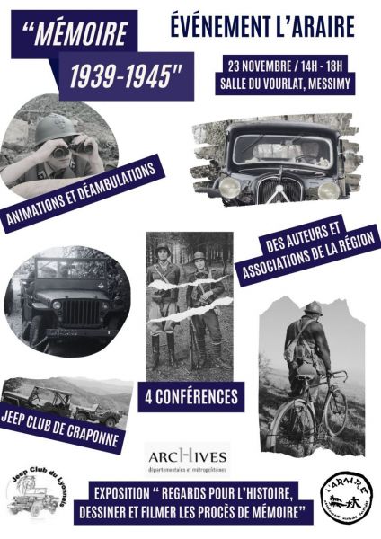 Une après-midi autour de la période historique : 1939-1945 avec déambulation en costume, accueil des véhicules du Jeep Day, associations et auteursmais aussi conférences et témoignages.